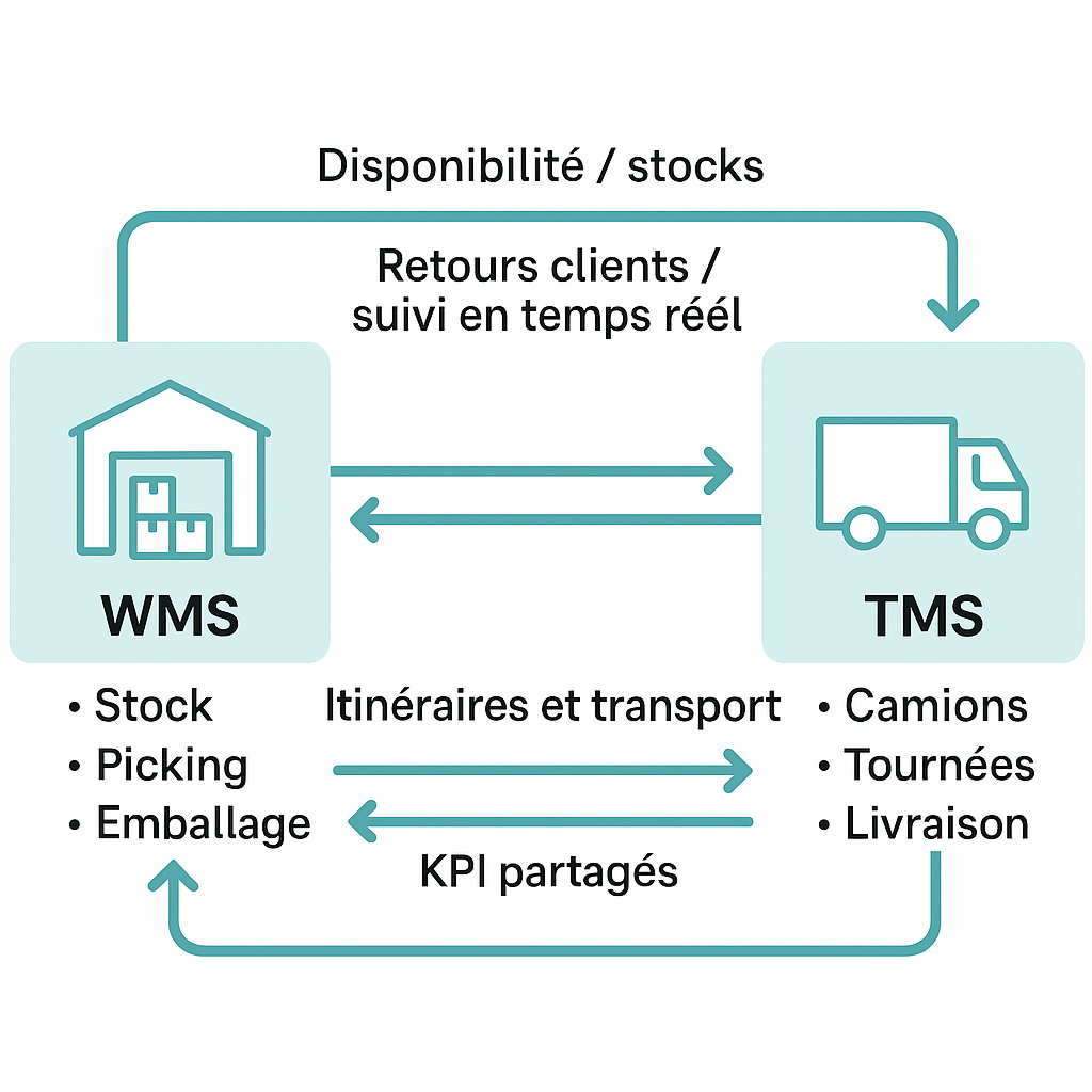 👉 En résumé : le WMS assure la disponibilité des stocks et la fiabilité de l’inventaire, tandis que le TMS garantit la fluidité des livraisons et leur rentabilité.